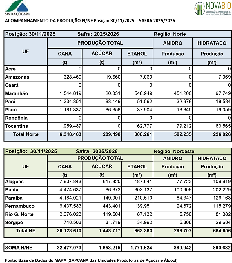ACOMPANHAMENTO DA PRODUÇÃO DA REGIÃO NORTE/NORDESTE 2025/2026