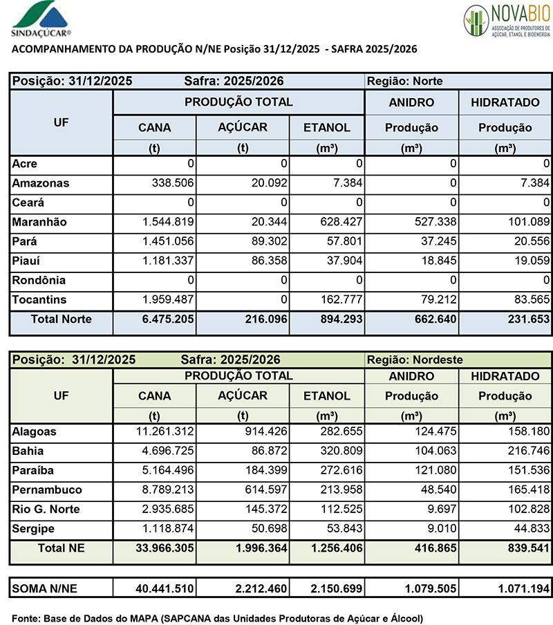 ACOMPANHAMENTO DA PRODUÇÃO SUCROALCOOLEIRA NE 2025/2026